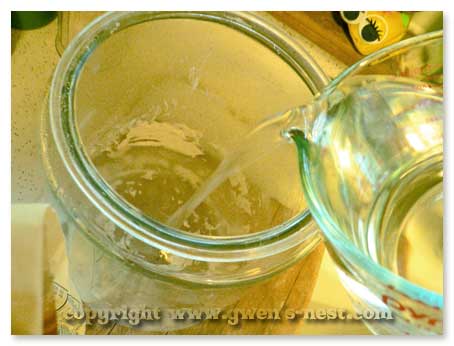 First, pour in your three cups of water. I live in the deep south, so there I use room temp water all year ’round. If you’re from Alaska or the UP <Hi Yoopers!> then you may be inclined to warm your water up just a little to make your yeast happier.
