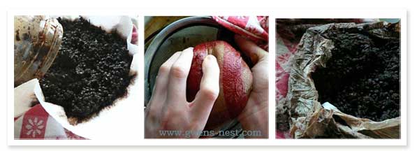 - Line the tea towel with paper towels or a coffee filter right in the center. The paper layer makes clean up SO much easier!